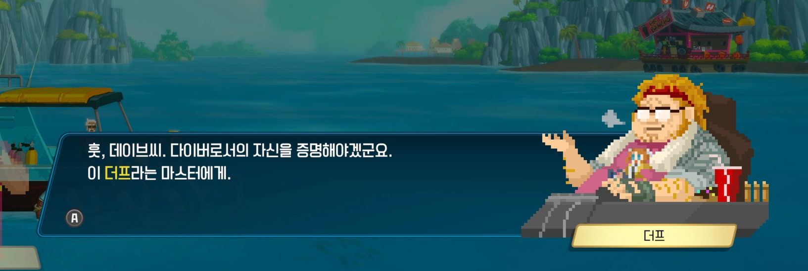 데이브 더 다이버 챕터1 스토리 공략입니다. 프롤로그가 끝나고 본격적으로 게임이 시작되는 지점입니다. 쿼스트를 깨기 위해 바로 달리지 않고 여유 있게 한다면 진행 상황이 저와 약간 다를