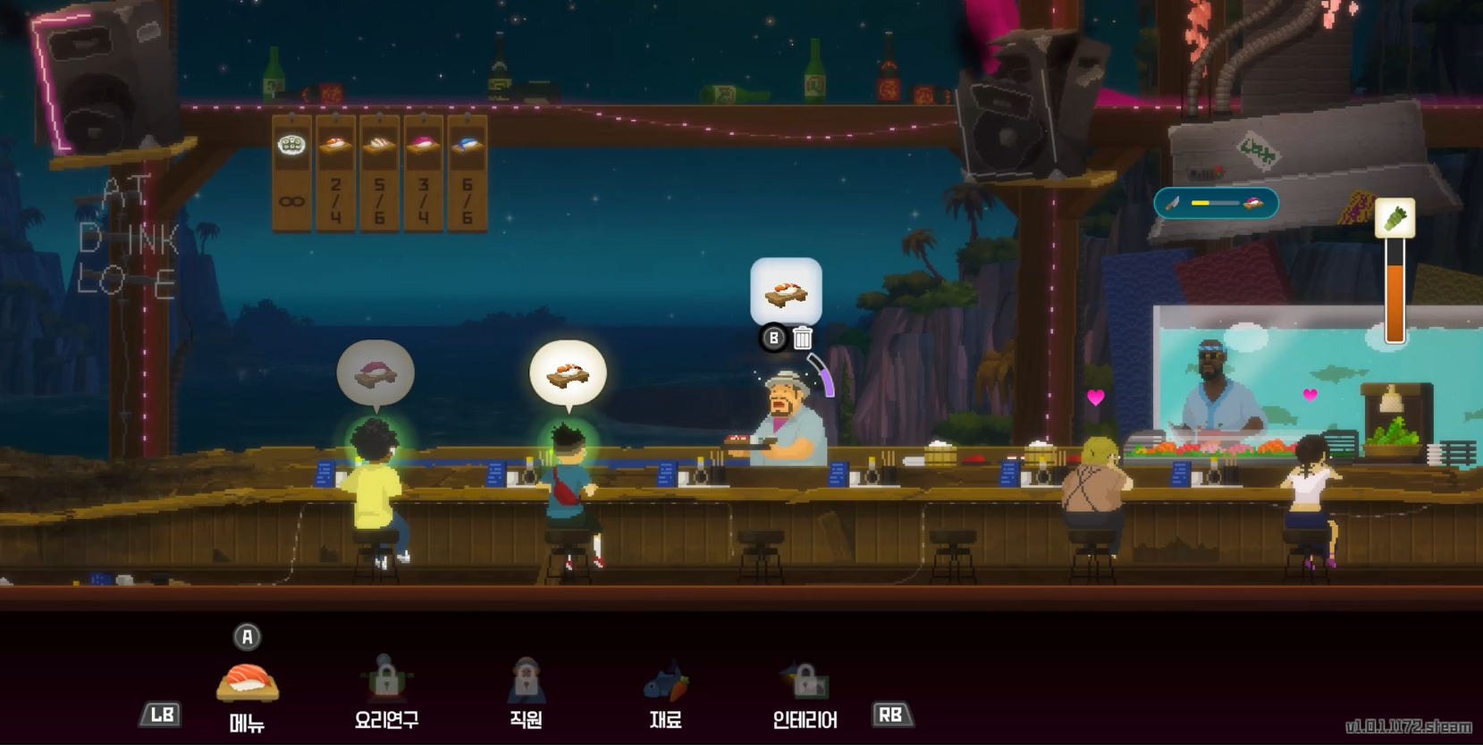 두번째는 식당을 관리하고 잡아온 재료로 반쵸씨가 만든 초밥이나 녹차를 서빙하는 파트입니다.