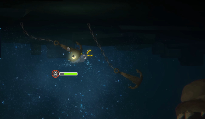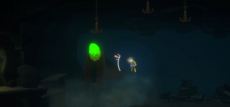 심해로 가서 돌 무더기 두 곳에 박혀 있는 못 2개를 뽑아주면 됩니다.