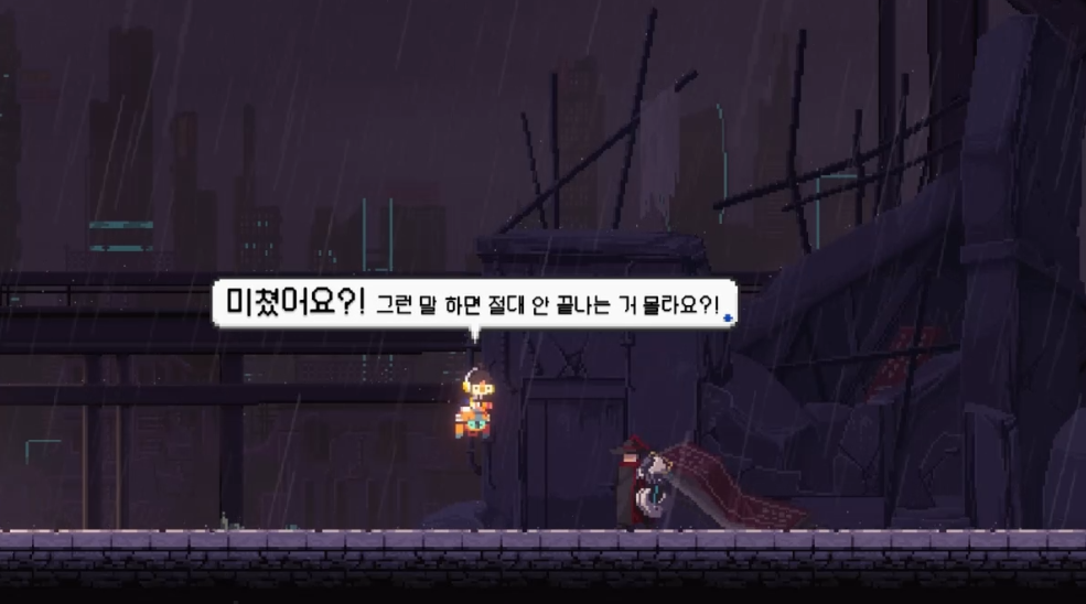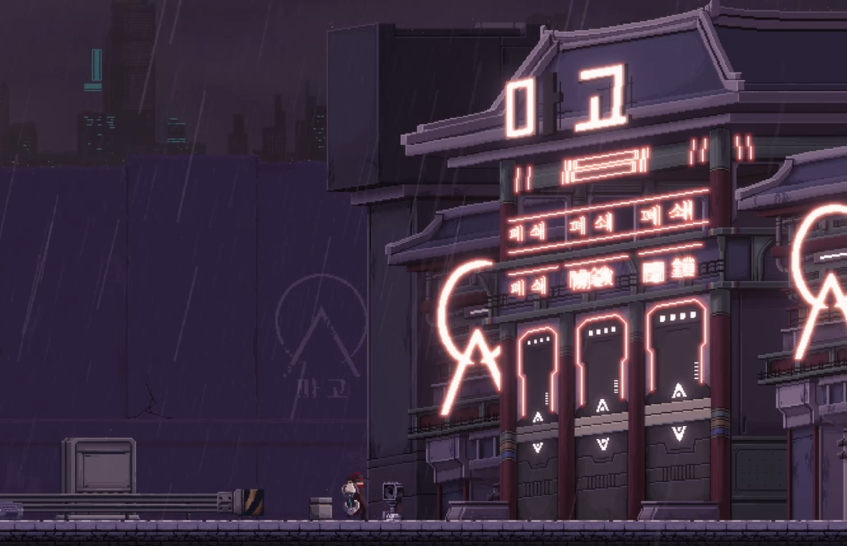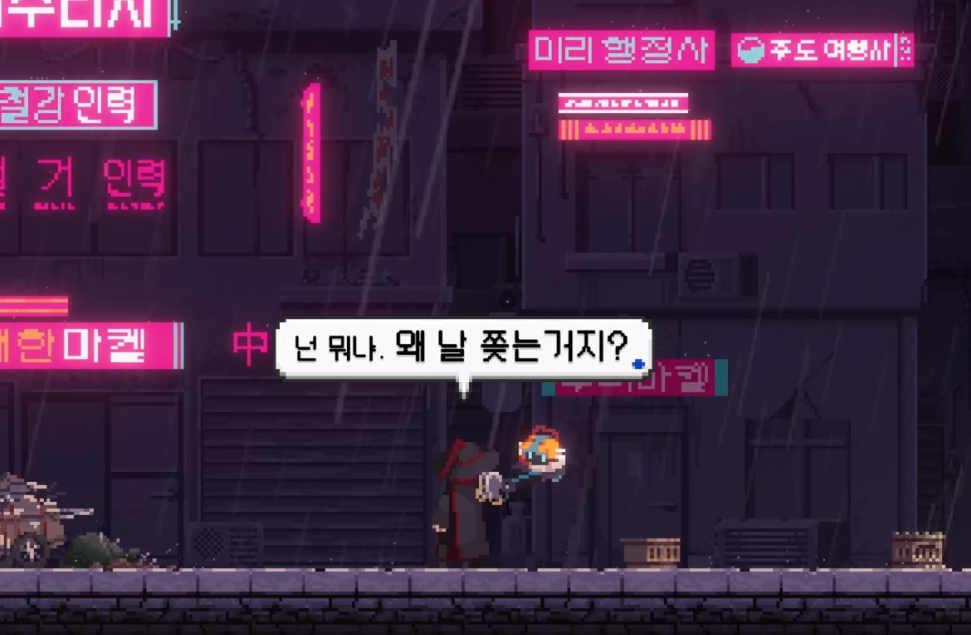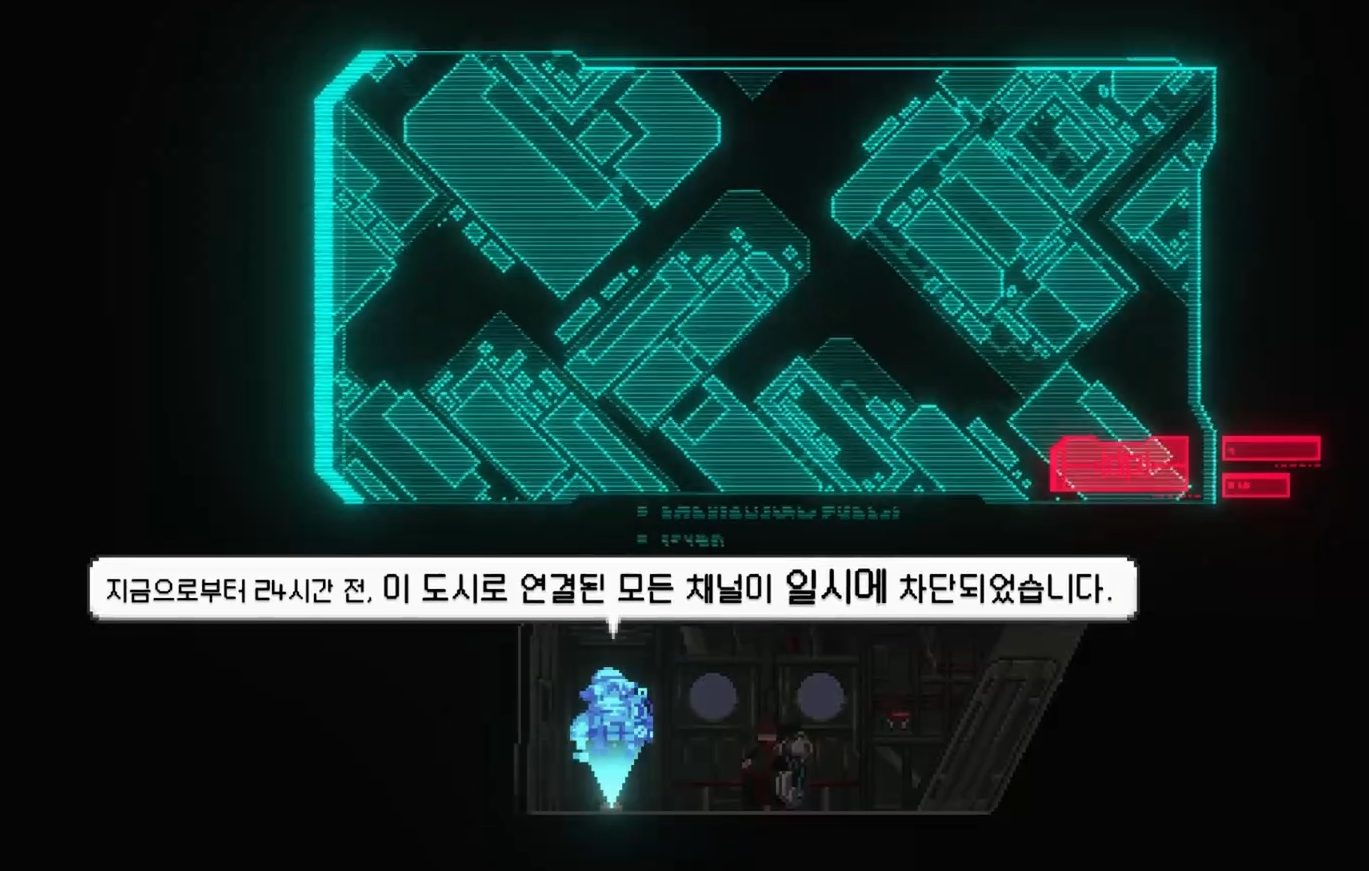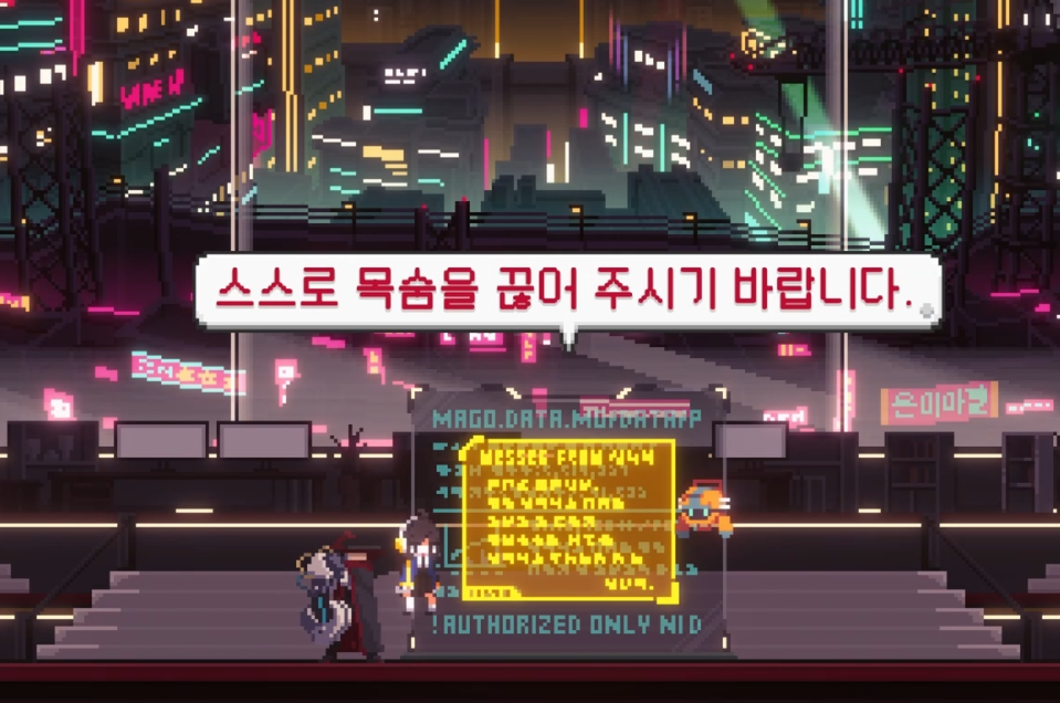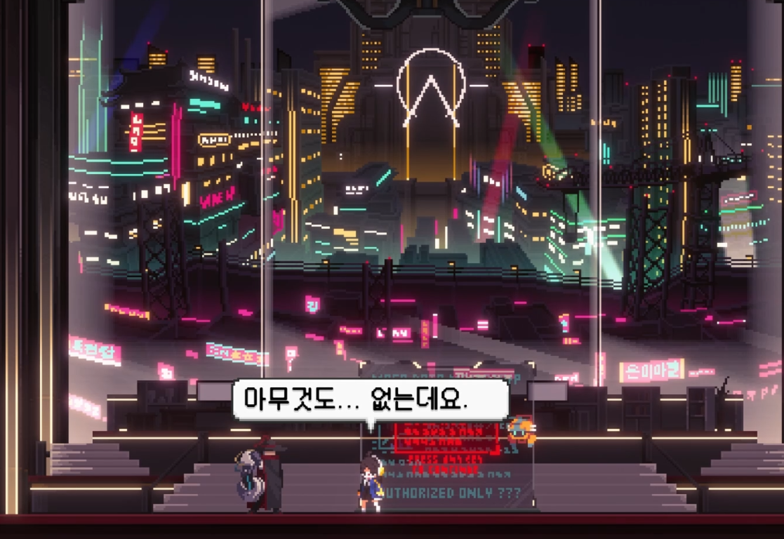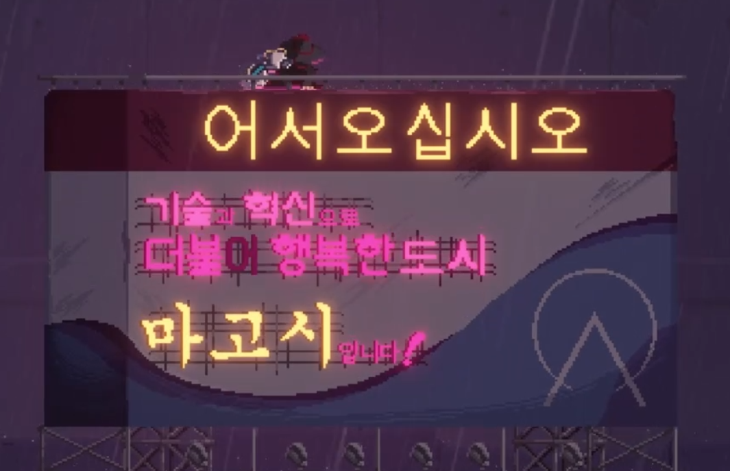 조선 사이버 펑크 배경 답게, 독특하고 멋진 디자인의 입구가 주인공을 반겨줍니다.