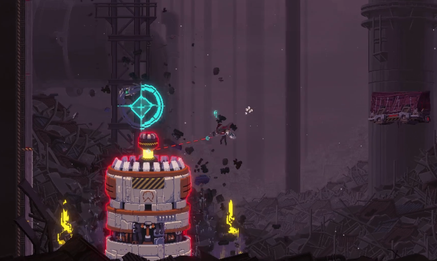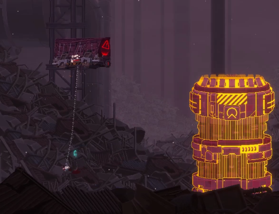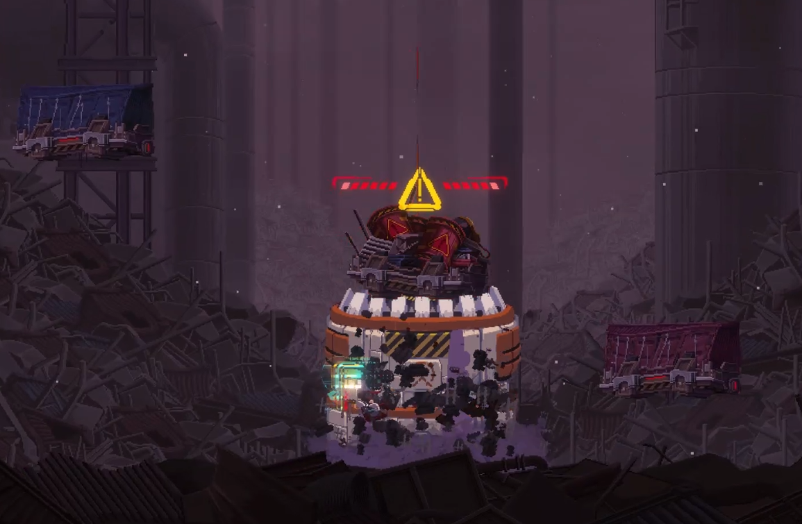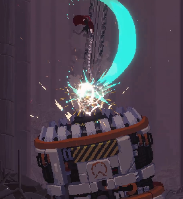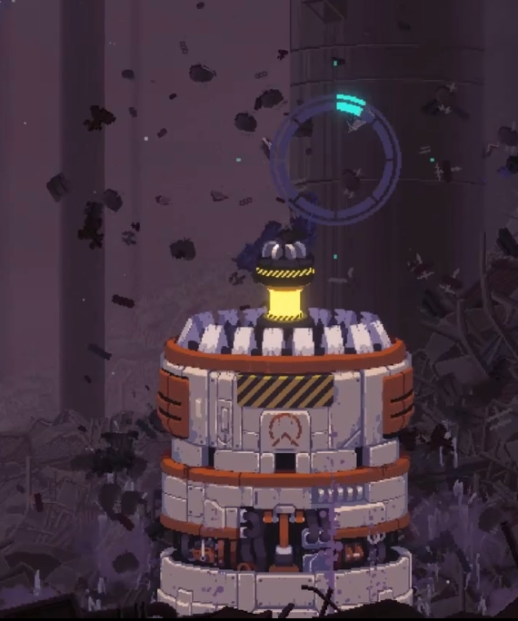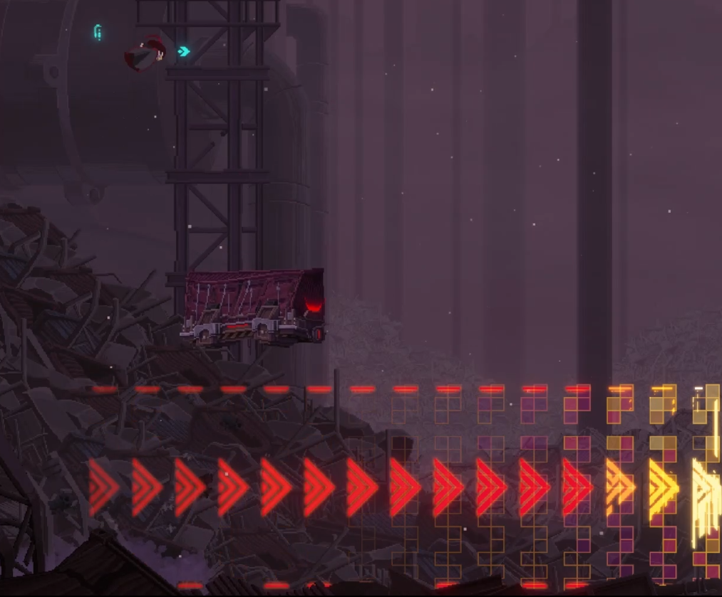 스테이지 맵을 진행할 때, 계속 쫒아오면서 튀어 나옵니다. 이 기계가 튀어나온 자리는 만지면 피가 닳는, 튜토리얼의 용암 같은 볼트 누전 지역으로 바뀌니, 모든 벽이 변하기 전에 빨리 진행하는 편이 유리합니다.