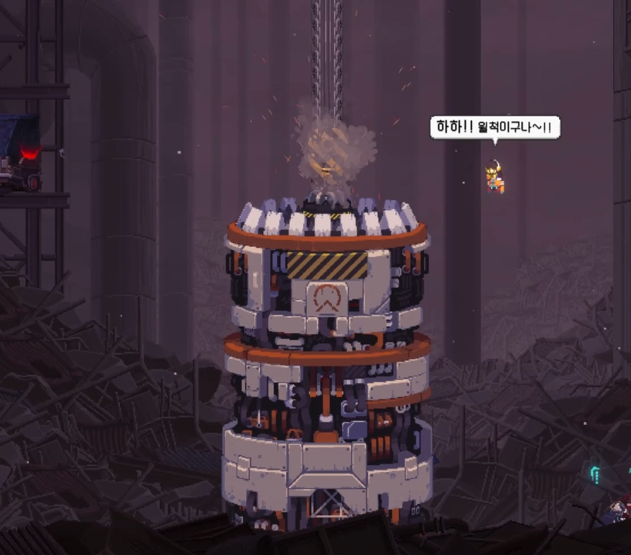 금마리는 지켰지만 주인공은 아래로 떨어지는데, 떨어진 김에 이 쓰레기 하역장에서 기계 지렁이, 집행명령을 처리하기로 합니다.