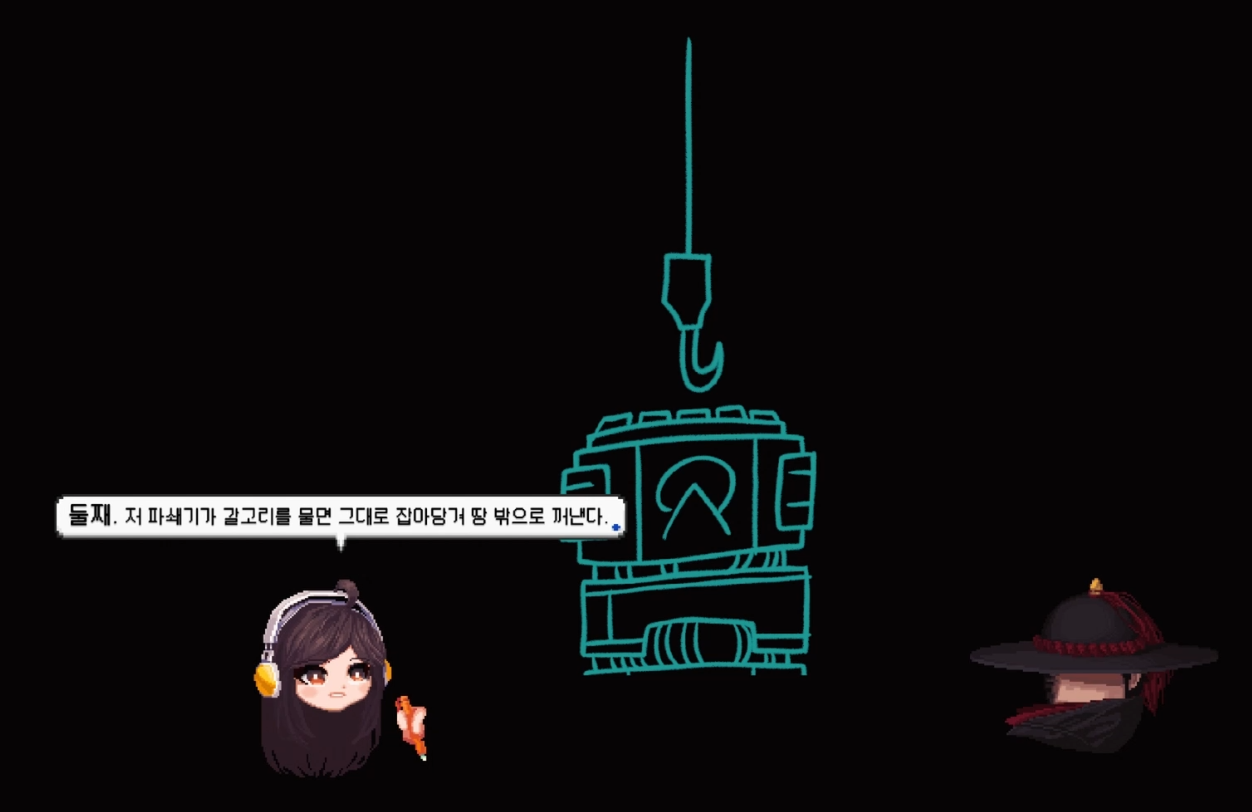 일단 기계 지렁이를 피해 도망치는 것에 성공합니다.