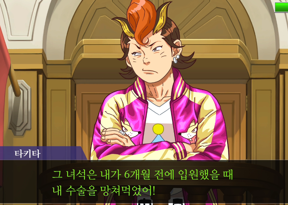 위의 3가지 증언에 대해 모두 [추궁하기] 를 합니다. 모든 증언에 추궁 하다 보면 자동으로 되긴 합니다. 그러면 타키타의 건강진단서를 얻을 수 있습니다.