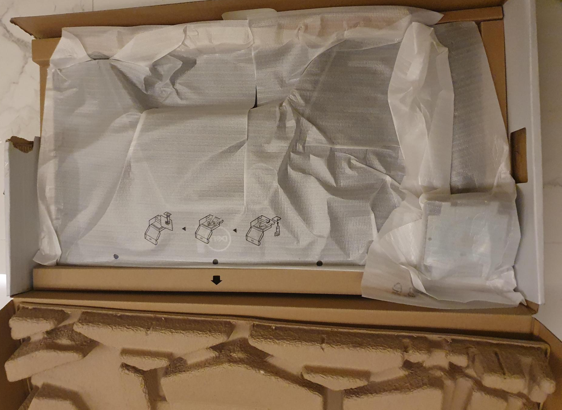마저 들어내면, 포장된 모니터와 스탠드 나머지 부분이 들어있습니다.