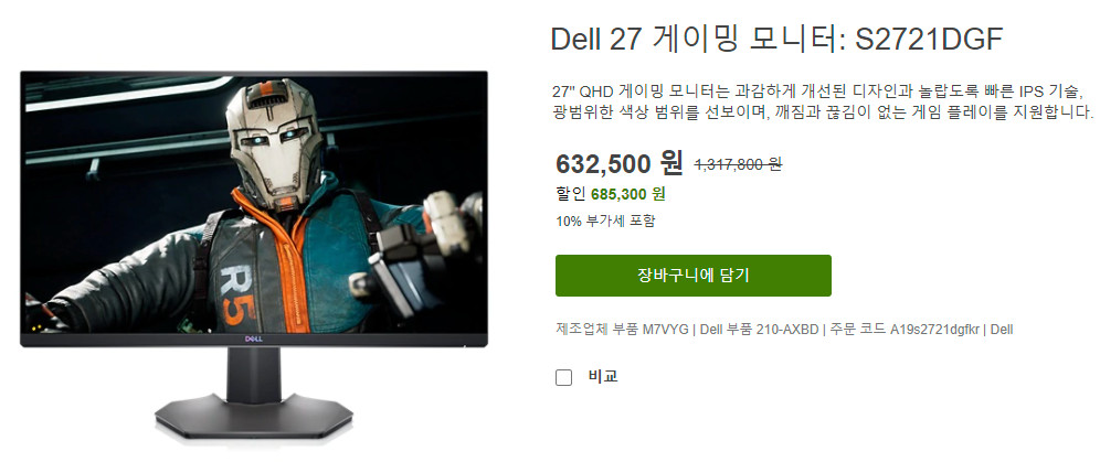바로 위의 이 모니터 입니다. 한국에 물량이 거의 없어서 저는 델 공식 홈페이지에서 구매했는데, 요즘 조금씩 물량이 들어오고 있는듯 합니다. AS 서비스등을 받으려면 델 공식 홈페이지에서 구매하는게 좋다는 말도 있는데 정확한 정보는 아니니 구매하실 분들은 조금 더 찾아보시길 바랍니다.