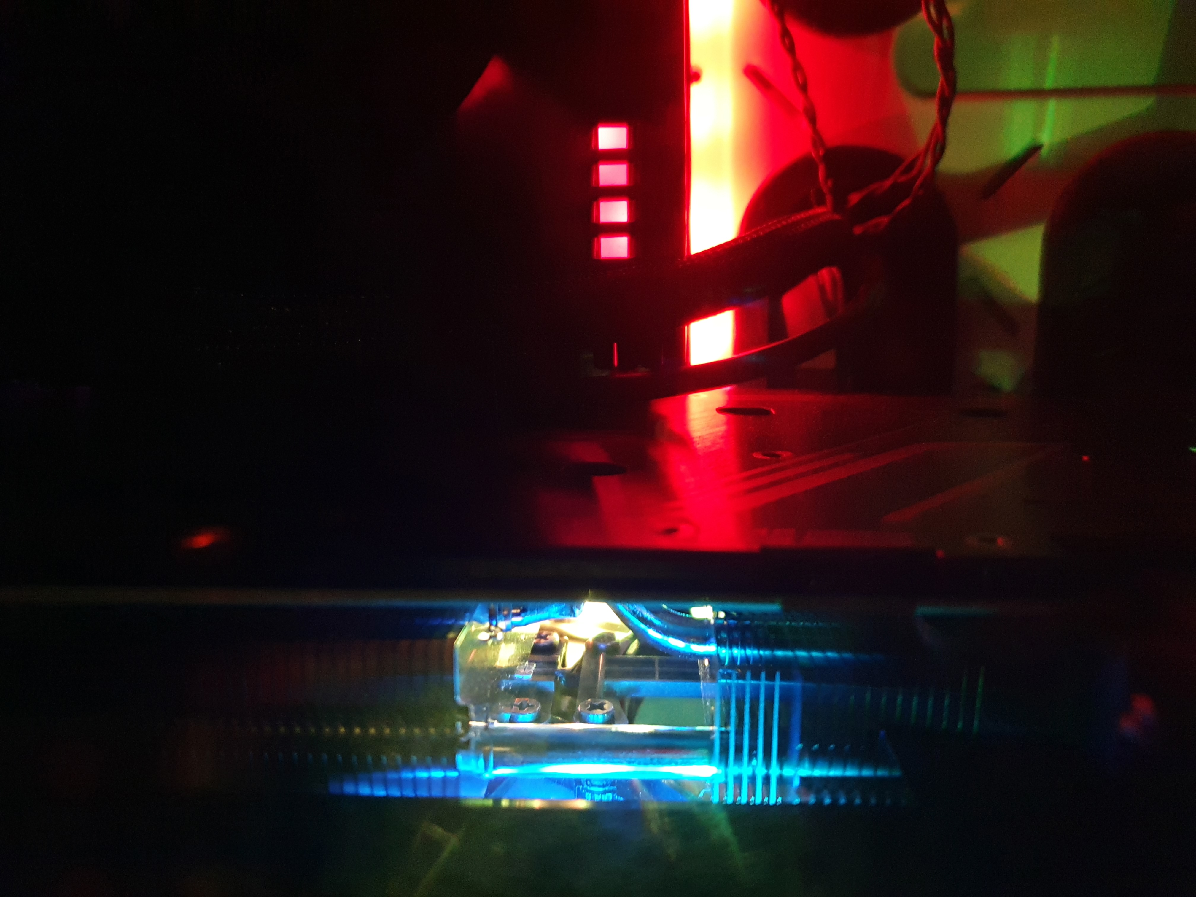 RGB 빛이 이쁘게 나는 것이 가장 큰 장점인데... 정작 제 메인보드에 꽂으면 오른쪽 처럼 아래를 보고 있어서 아무 의미가 없습니다 ㅎㅎ... 빛이 보이긴 하는데 아무튼...