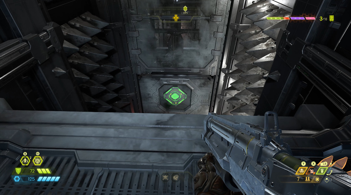 여기도 전에 봤던 것과 비슷한 구간입니다. 문이 열리기 시작하자마자 총으로 쏘고 내려가야 늦지 않습니다.