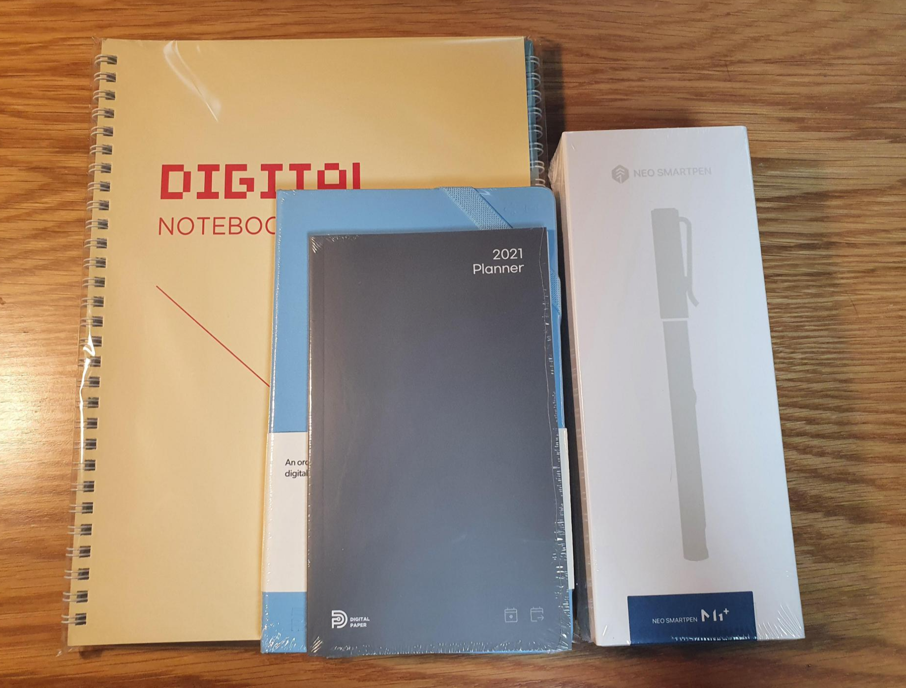처음 배달 온 상태입니다. 스마트펜은 사용할 수 있는 전용 종이로 된 노트가 필요한데, M1+ 스마트펜을 구매하면 기본적으로 노트5권을 함께 줍니다. 거기에 같이 사용할 다이어리 2종류를 함께 구매해봤습니다.