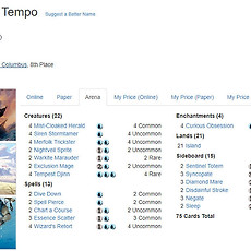반응형 Magic1 Mono Blue Tempo - 모노 블루 템포 Mono Blue Tempo 첫 포스트로 소개할 덱은 모노블루 템포덱입니다. 저는 예전에 MTGO만 조금 해봤기 때문에 매직 초보자나 마찬가지고,아레나 웰컴팩 + 실덱 코드를 제외하고는 아직 과금을 안했기 때문에전반적인 카드와 와일드 카드가 매우 부족한 상태입니다. 특히 와일드 카드로 덱을 만들다 보면, 레어 와일드 카드가 상당히 부족하다는걸 느끼게 됩니다.제대로 된 덱 하나를 완성하고 싶어서 검색하던중, 이 덱이 눈에 띄었습니다. 출처 : https://www.mtggoldfish.com/archetype/standard-mono-blue-tempo-60563#arena 이 덱은 다른 메타덱에 비해서 필요한 레어카드의 수가 매우 적은편입니다. 4 * Tempest Djinn (폭풍우 지니), 2 * W.. 2018. 10. 11. 이전 1 다음 반응형